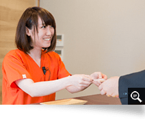 お車でお越しの方には、サービスチケットをお渡しいたしますので、受付にパーキングチケット(駐車券)をご提示ください。