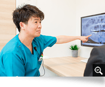 現在の歯科治療は、パノラマX線撮影とデンタルX線撮影の2次元画像による診断が主流ですが、当院は最新の歯科用CT装置により3次元画像で症状を把握することで、経験値に頼らない、より正確な診査をおこなっています。